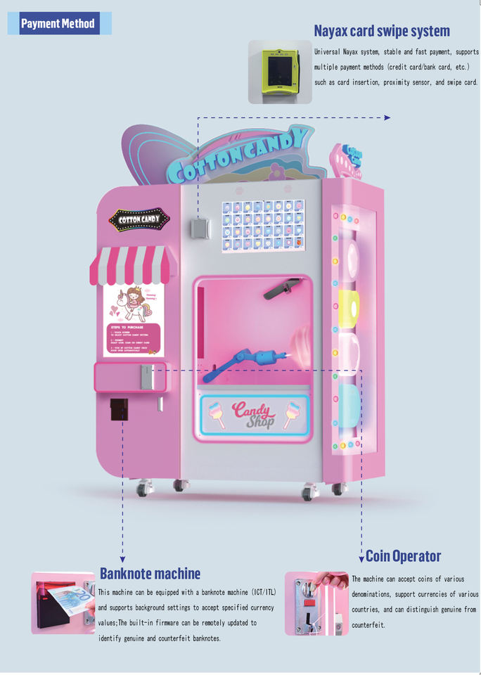 Máquina Expendedora de algodón de azúcar completamente automática barata con lector de tarjetas máquina de algodón de azúcar japonesa de gestión inteligente