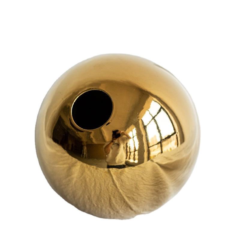 Florero de bola de cerámica electrochapado dorado barato para Interior florero de porcelana decorativo moderno para el hogar sala de estar