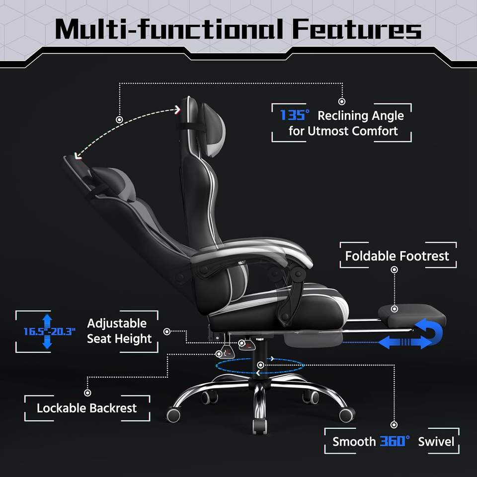 Silla ergonómica para juegos de ordenador ajustable en altura barata, soporte Lumbar de masaje, Silla de escritorio para jugadores con reposapiés, negro y blanco