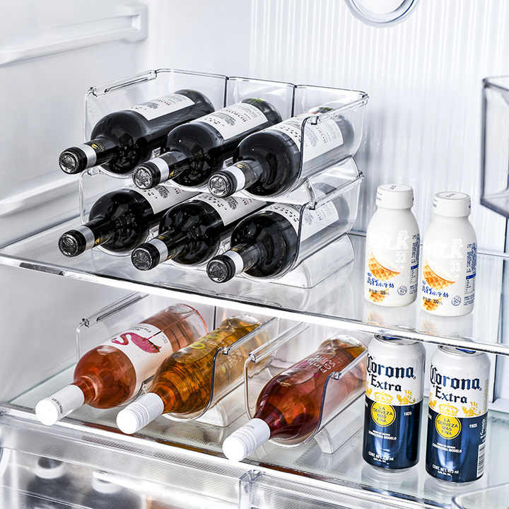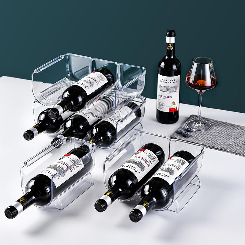 Soporte para botellas de agua apilable PET de una sola capa, gran oferta, estante para bandeja de vino tinto