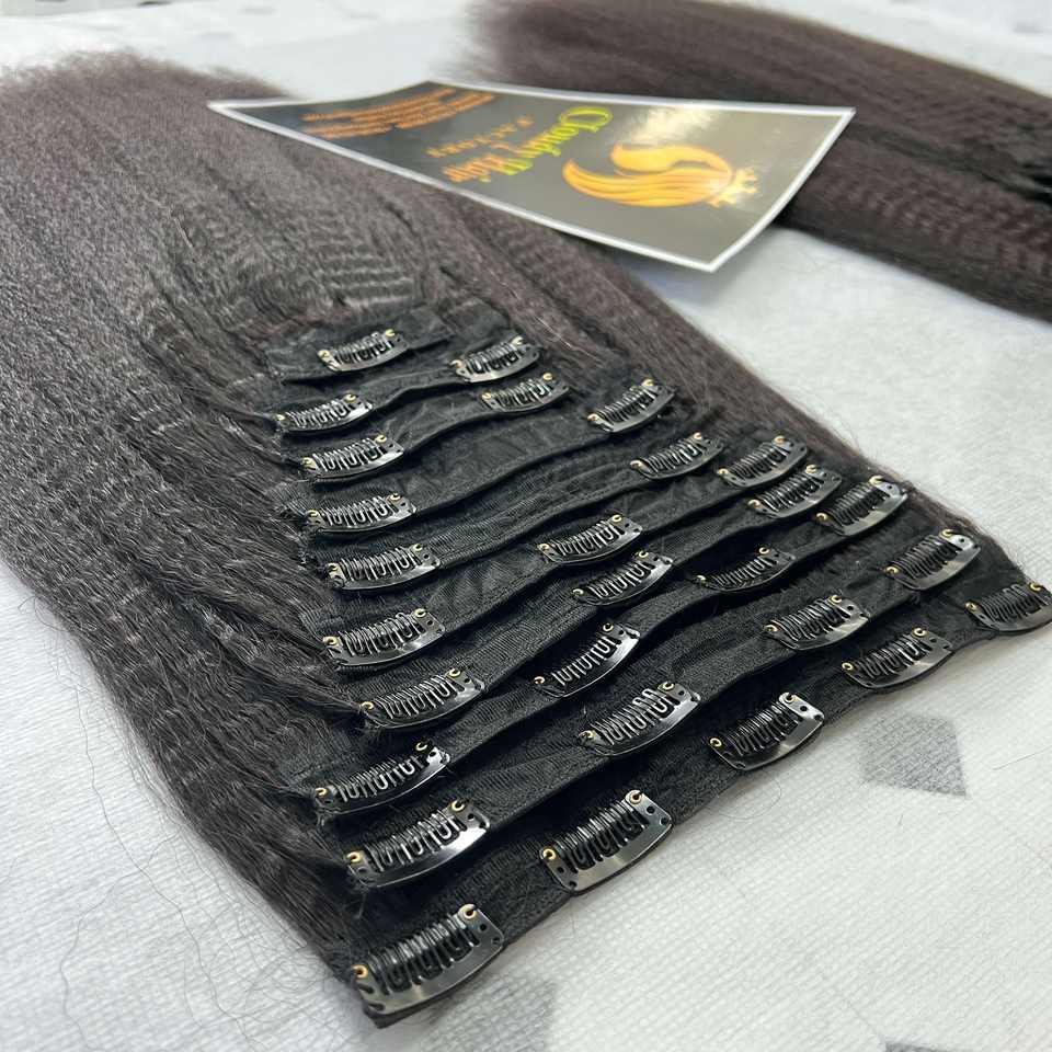 Clips de extensión de cabello humano baratos en extensiones de cabello sin costuras con Clip Ins Yaki al por mayor Clip en extensiones de cabello