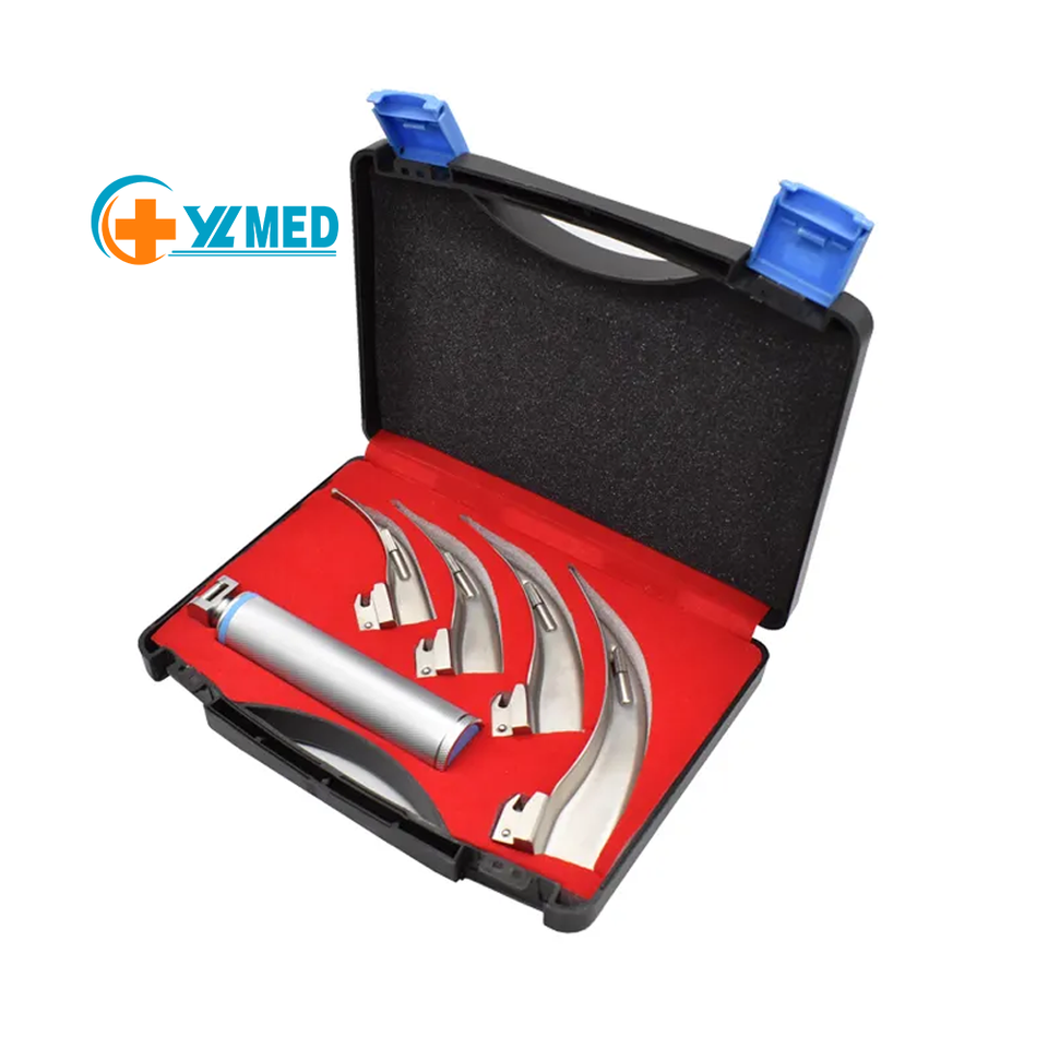 Laringoscopio de acero inoxidable con luz blanca LED barata, 4 cuchillas, equipo de diagnóstico veterinario, intubación traqueal para mascotas de animales pequeños