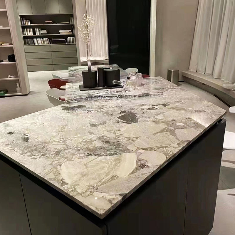 Barato Oreo gris mármol losa gris claro muebles encimera 18mm Da Vinci escalera Capico gris café Mesa sofá fondo