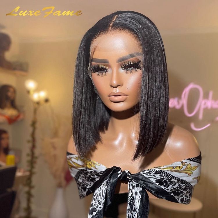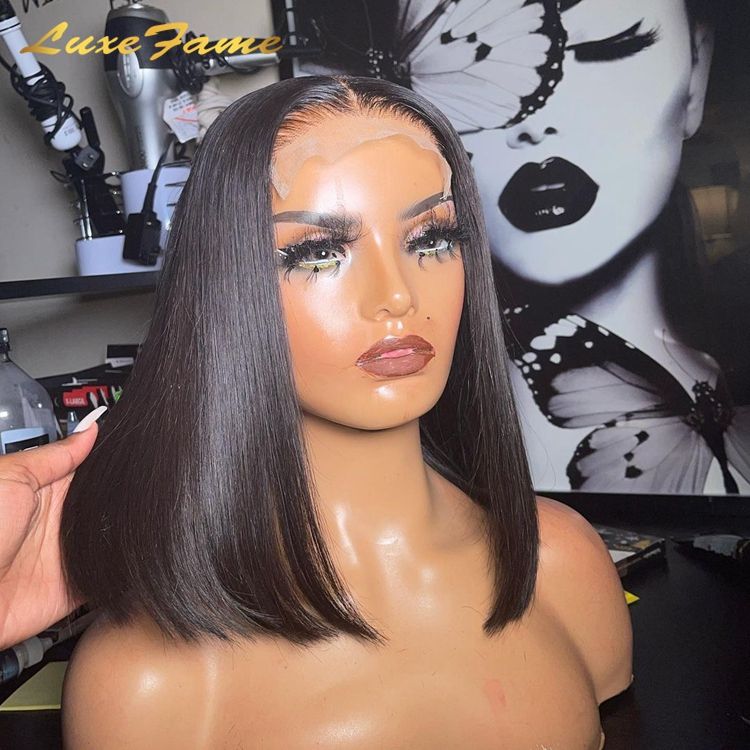 Luxefame-Peluca de cabello humano brasileño con malla frontal, peluca de encaje de cabello virgen liso para mujeres negras, peluca de encaje Pre desplumada con pelo de bebé