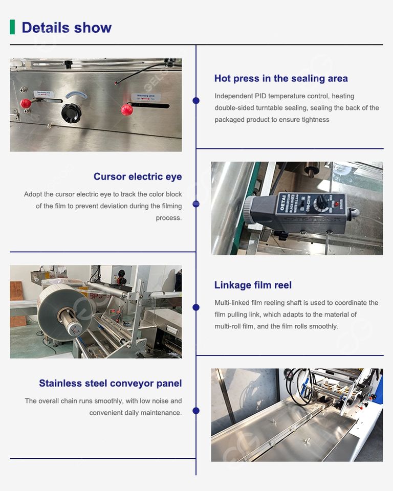 Nombre del producto:GG-ZS600X Horizontal bolsa almohada fechas máquina de embalaje