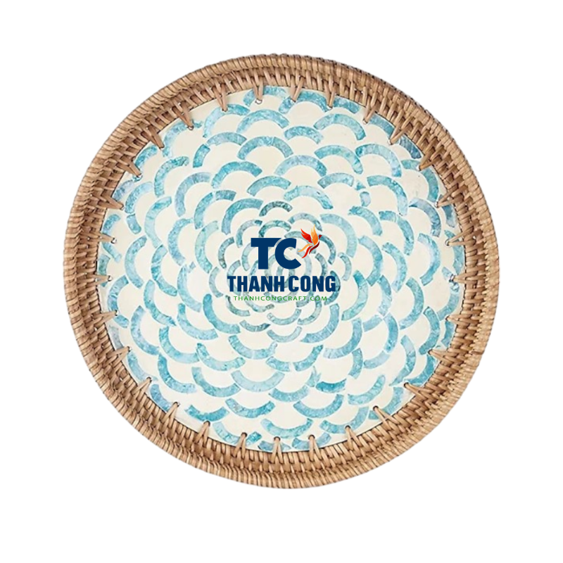 Bandeja de ratán decorativa 2025 de Vietnam tejida a mano con mosaico y incrustaciones de perlas madre para decoración de baño Precio