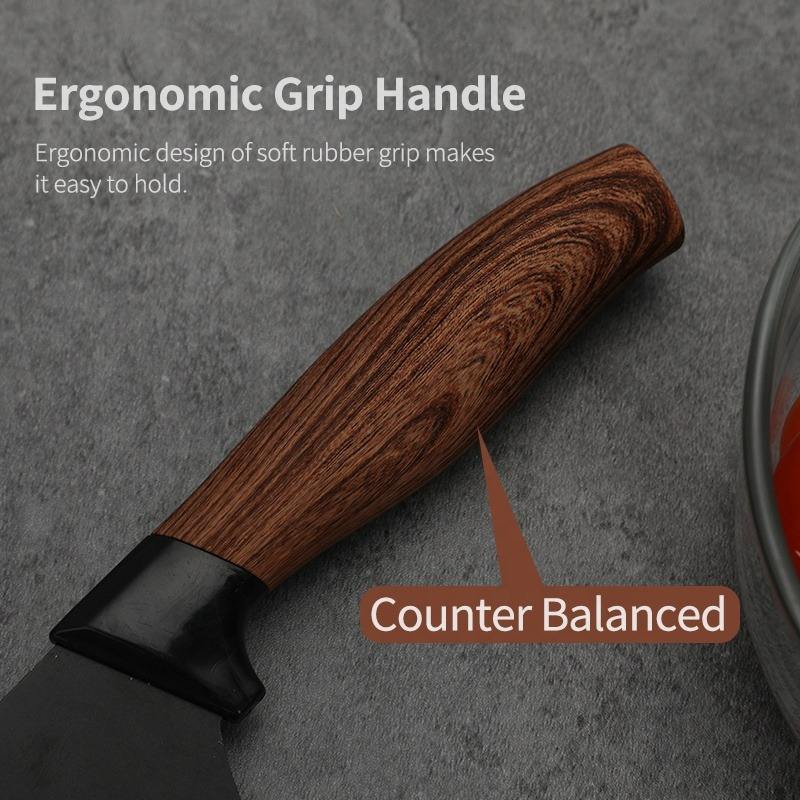 Hoja de acero inoxidable duradera: el cuchillo cuenta con una hoja de resina negra 3CR13 + de acero inoxidable, lo que garantiza un borde duradero y resistente que resiste la corrosión y el óxido.