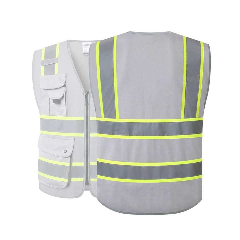Chaleco de seguridad de alta visibilidad de precio barato, chaleco de seguridad reflectante estilo cremallera frontal con diseño de logotipo personalizado para unisex