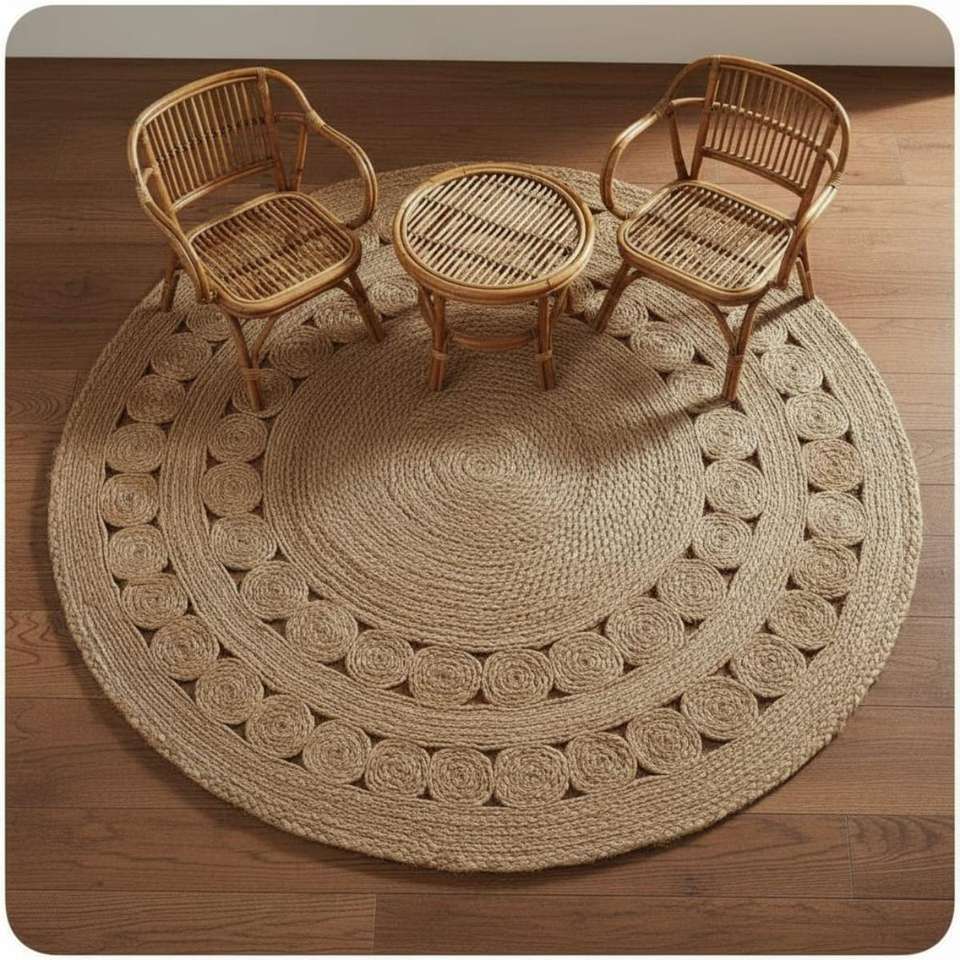 Alfombra de Yute Trenzada a Precio Económico, Alfombra Redonda de Yute para Sala de Estar o Dormitorio, Alfombra Redonda de Yute Hecha a Mano en India