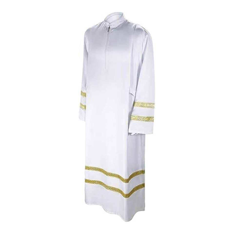 Bata de Sacerdote de mezcla de algodón de precio barato con cierre de cremallera, cuello romano para ceremonias religiosas