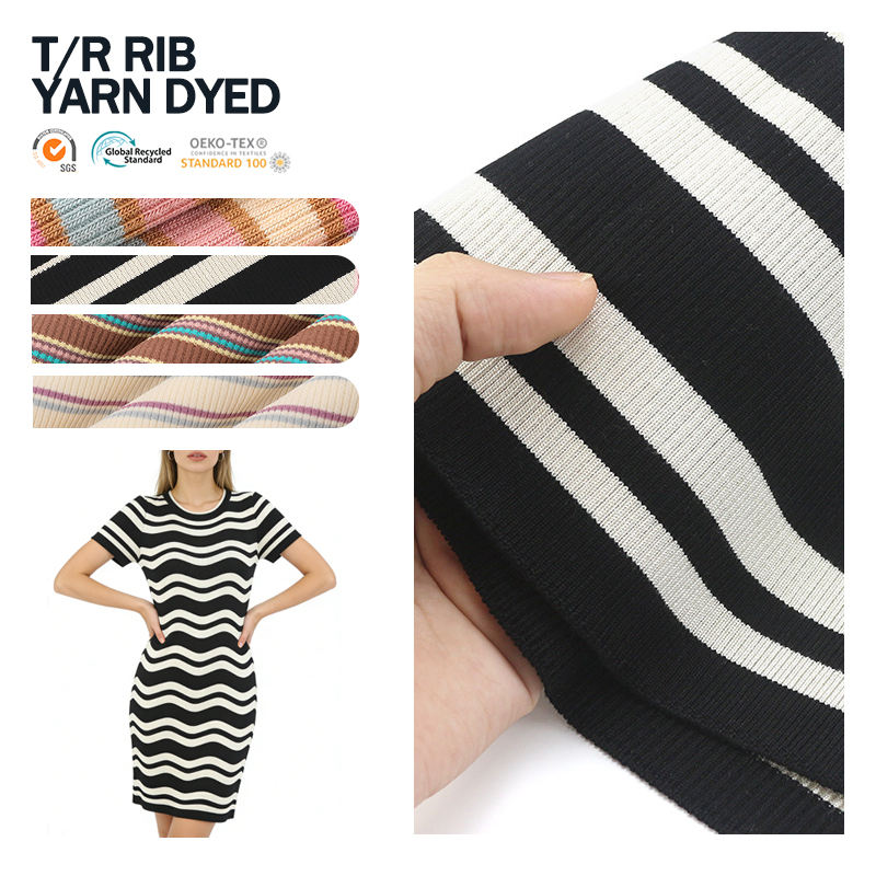 Tela de Punto Elástica Personalizada a Precio Económico, Tejido de Punto Acordonado 2x2 Gris TR Teñido con Hilo para Suéter