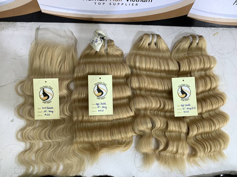 Extensiones de cabello humano Natural, mechones de onda profunda, Color rubio, 613, Remy virgen, precio barato