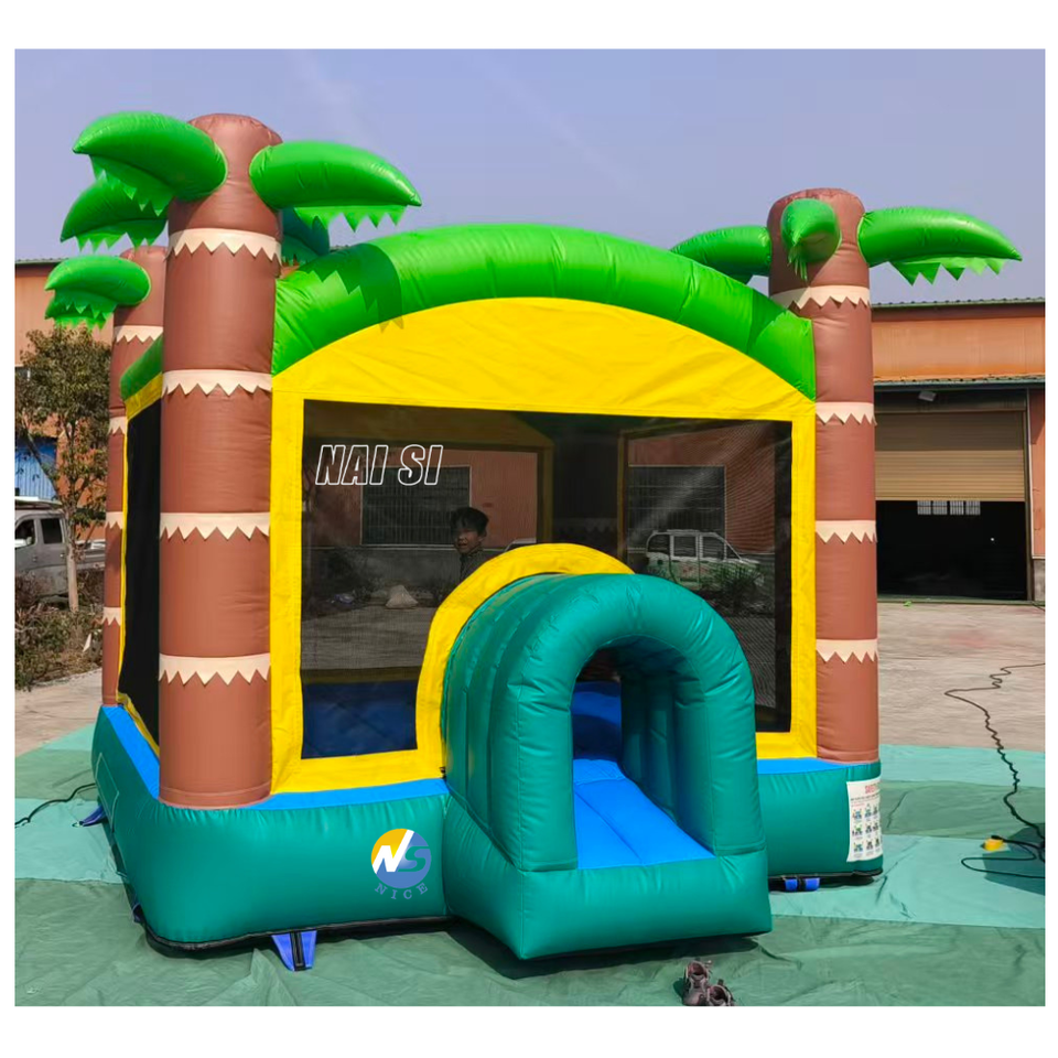 Castillo Inflable Tropical de PVC Resistente a Precio Económico para Niños, Castillo Hinchable para Exteriores