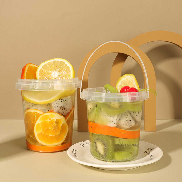 Cubo de Plástico PP Transparente de 1000ml (32oz) con Asa para Té de Frutas, Precio de Fábrica, Venta al por Mayor, para Envases de Zumo de Frutas para Llevar
