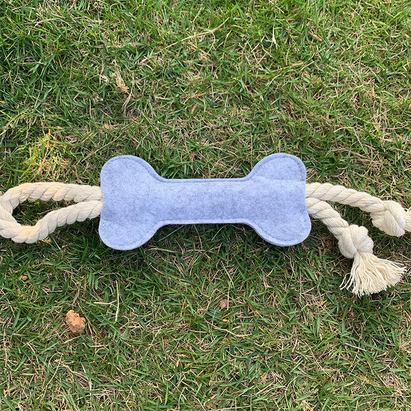 Precio barato hueso de perro de fieltro con cuerda de algodón juguetes duraderos para masticar perros al aire libre mascotas perro juguete para entrenamiento