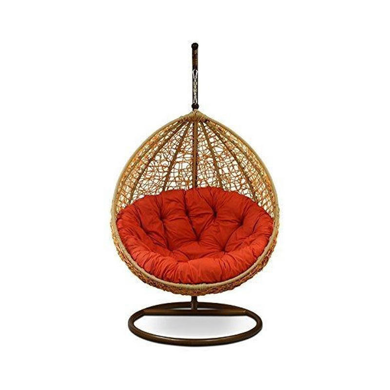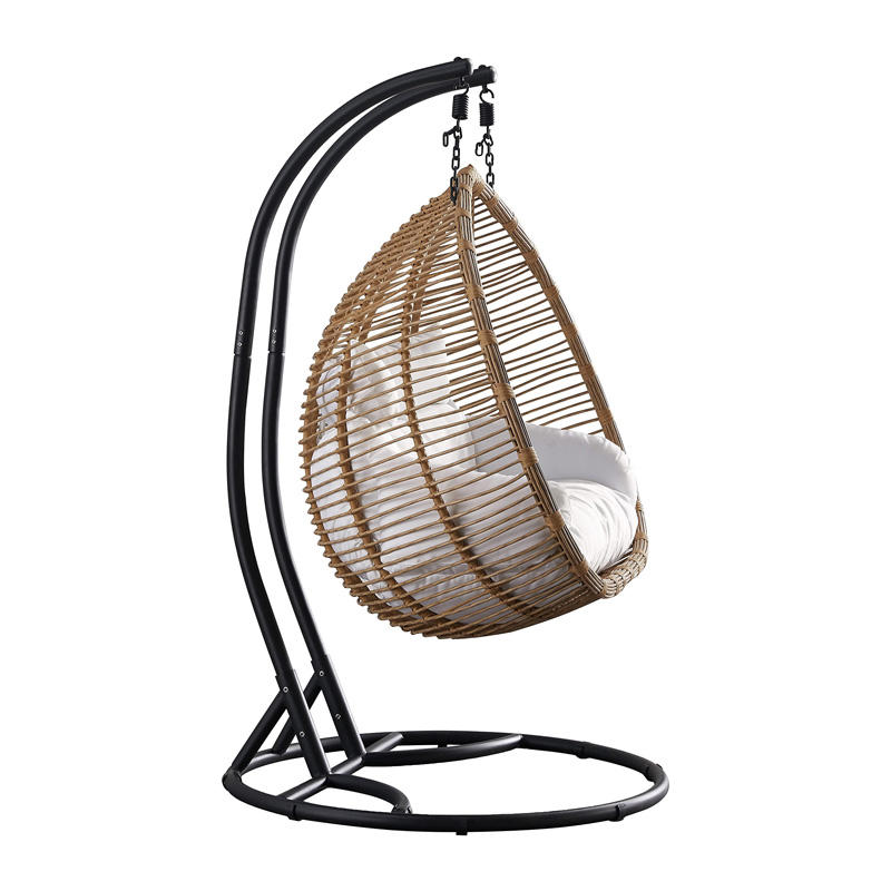 Columpio de mimbre blanco crema de lujo para 2 personas, Banco duradero para asientos al aire libre de 550 libras con cojines de felpa, columpio colgante para Patio