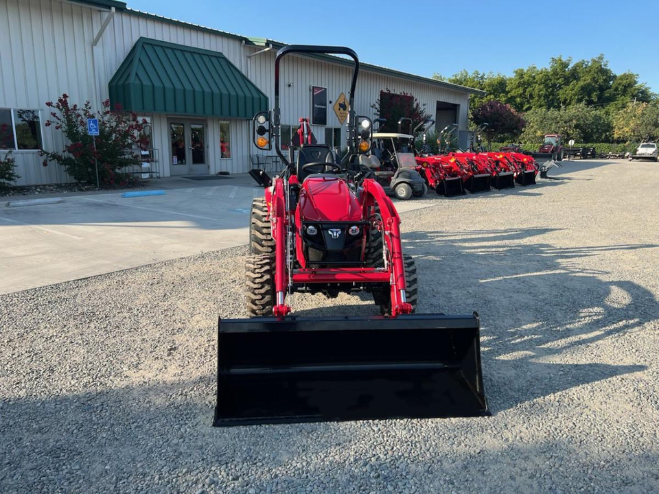 Mini tractor agrícola TYM T25 de precio económico con cargador frontal y trasero, 24HP, 4x4, en venta.