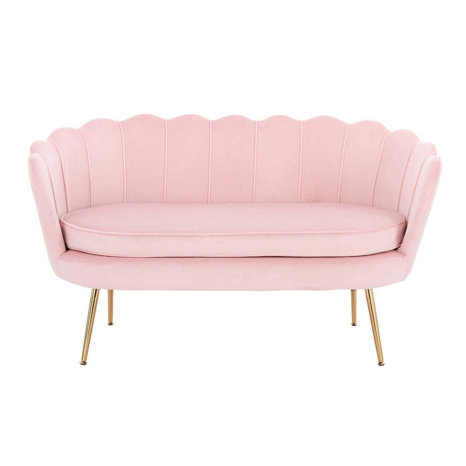 Sofá de concha de dos plazas moderno de estilo nórdico a precio barato, sofá de boda, patas doradas, sofá de recepción de concha de terciopelo
