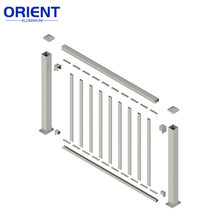 Barandilla de Aluminio con Recubrimiento en Polvo para Exteriores, Diseño Tubular con Barandilla de Vidrio para Terraza, Precio Económico