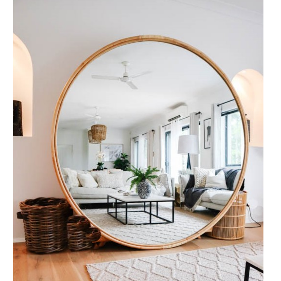 Precio barato Espejo de ratán Espejo de pared de mimbre de ratán natural para exportar