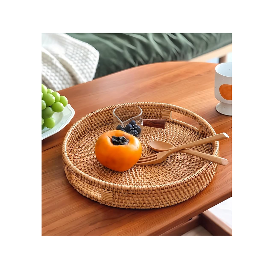 Bandejas Rectangulares de Ratán a Precio Económico, Bandejas de Ratán Tejidas a Mano para Servir Frutas, Pan, Té, Café, Almacenamiento y Servicio, en Oferta