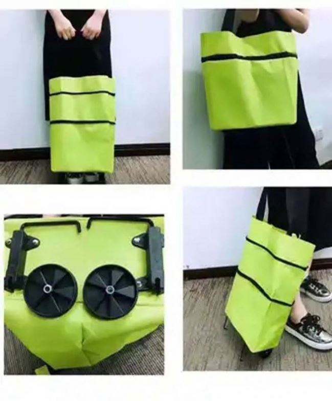 Carrito de Compras Plegable Portátil Reutilizable a Precio Económico con Ruedas, Tela Oxford, Impresión Personalizada