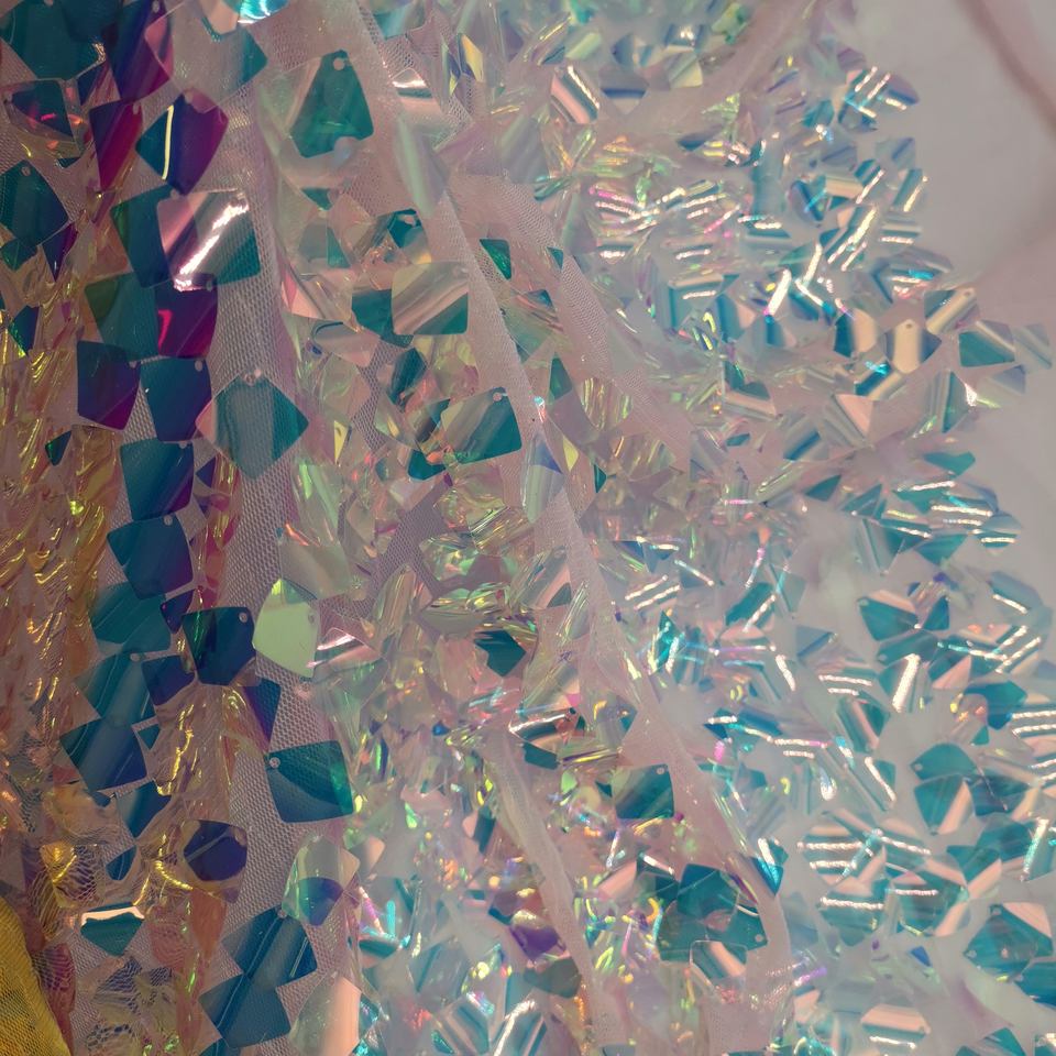 Tela de Seda Italiana con Lentejuelas sobre Malla para Vestido de Novia a Precio Económico