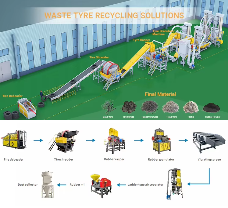 Producto Final:1-7 mm de virutas de caucho / 30-120 mallas de polvo de caucho