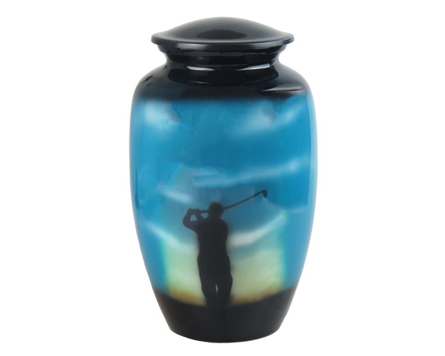 Product Name:Blue Sky Golfer Golf Theme Printed Design Metal Adult Cremation Urn
