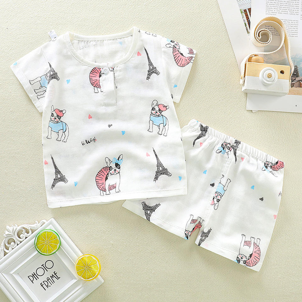 Conjunto de Gasa de Algodón Puro Transpirable con Estampado de Dibujos Animados para Niño, Económico