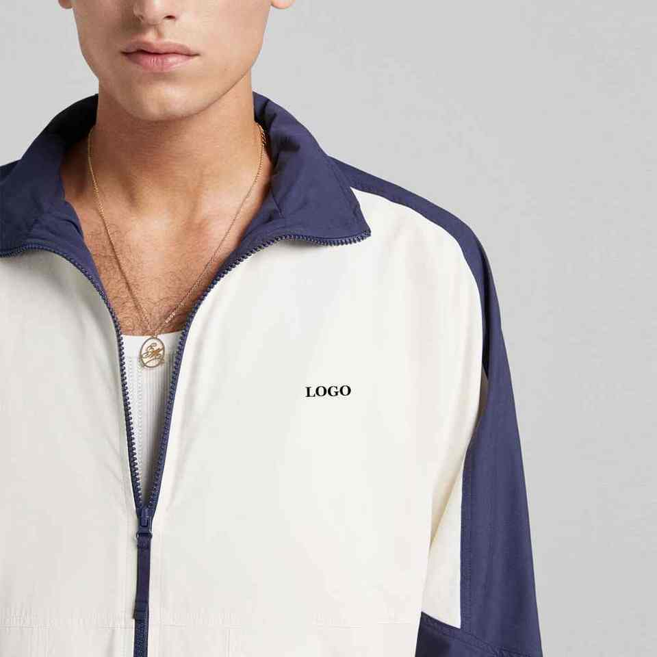 Chándal deportivo económico para hombre, conjunto de chaqueta y pantalón de dos piezas con bloque de color y logotipo personalizado