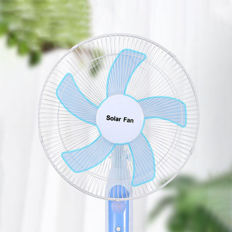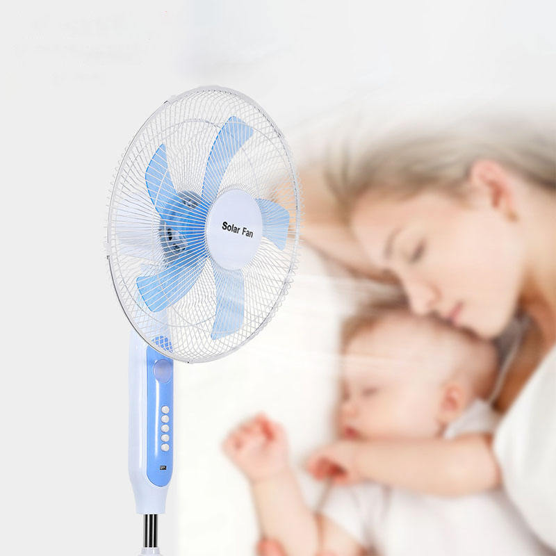 Ventiladores solares de soporte de 16 pulgadas de flujo de aire DC recargables baratos con panel solar hogar sótano piso de alta resistencia pedetal interior