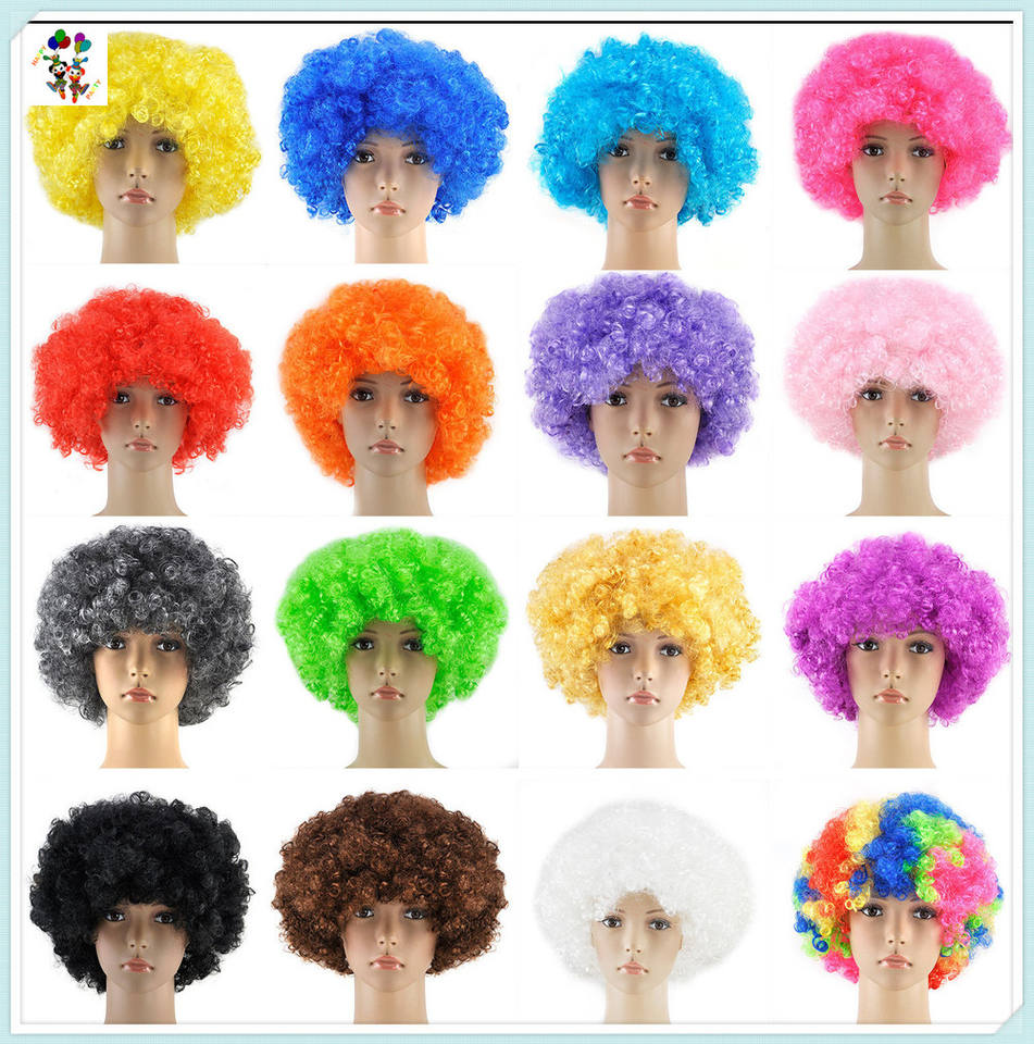 Pelucas de payaso sintético Afro rizado, Color rojo corto, barata, HPC-1254