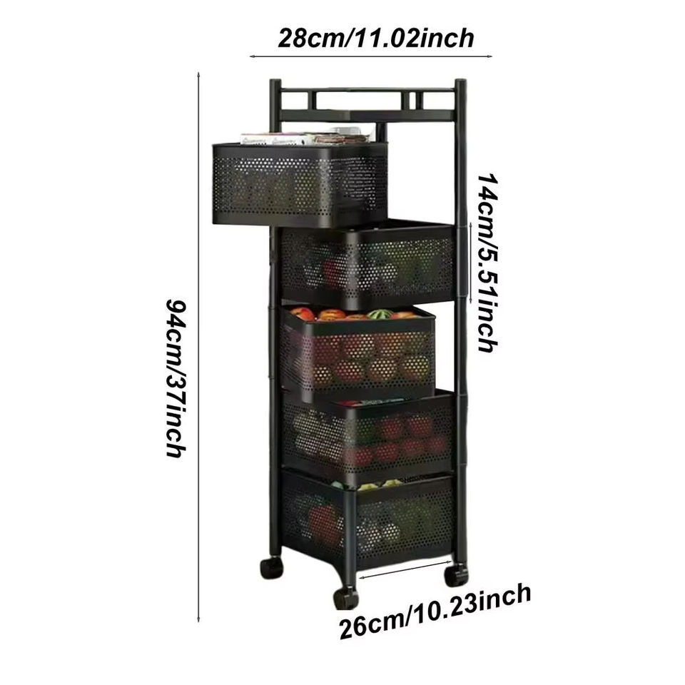 Estante de Cocina Giratorio Extraíble y Económico, Estante de Almacenamiento Multifuncional de Varios Niveles para el Hogar, Cesta para Frutas y Verduras, Carrito