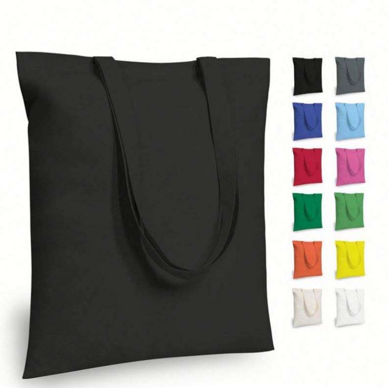 Bolsas de Compras Reutilizables y Lavables a Máquina, de Algodón, Lisas, Tipo Tote, con Logotipo Personalizado Impreso
