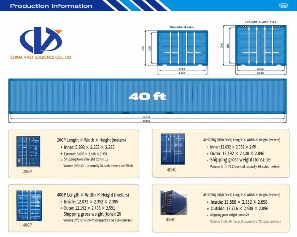 40HQ, 40GP, 20GP, 45HQTipo de contenedor