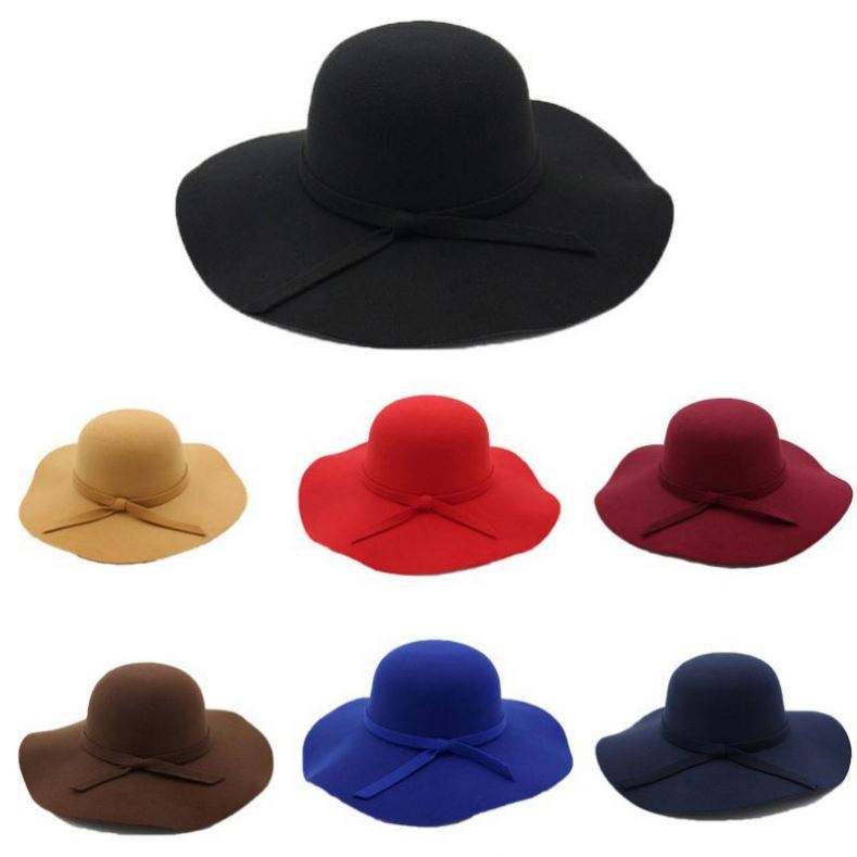 Nombre del artículo:Sombrero de fieltro de lana de ala ancha para mujer, sombreros fedora