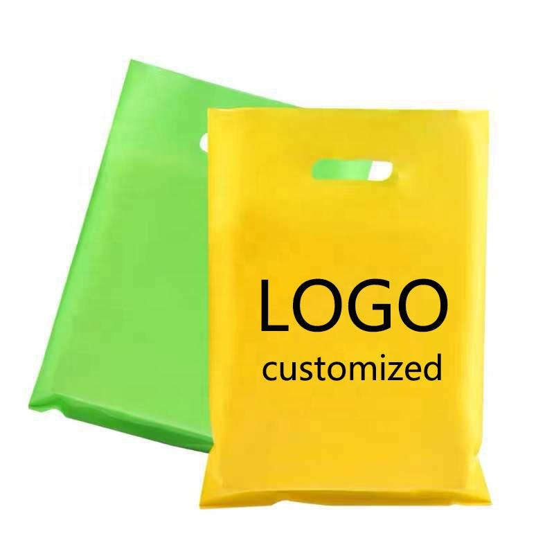 Fábrica de fuente barata con logotipo impreso, mercancía personalizada de HDPE LDPE, bolsa de compras de plástico con asa troquelada