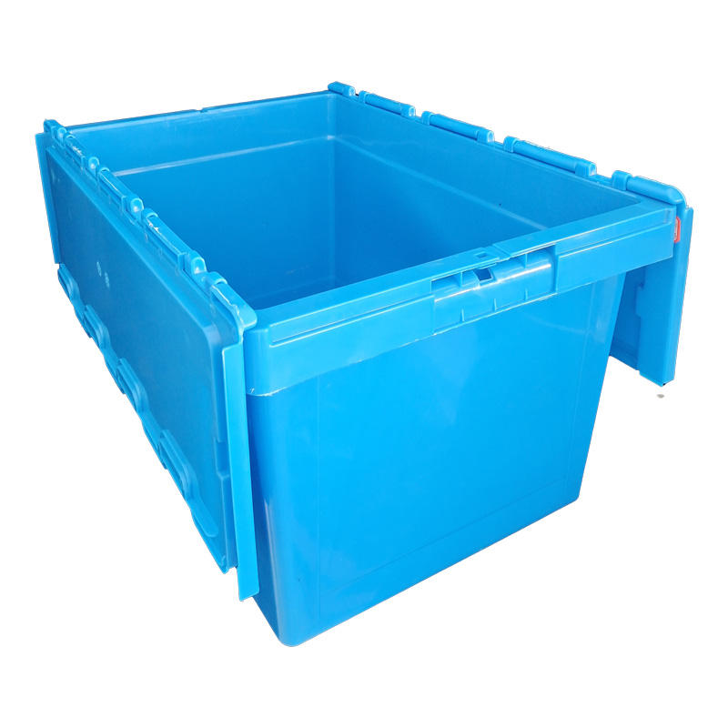 Organizador apilable barato, caja de almacenamiento de embalaje, caja móvil de plástico con tapa, caja de transporte de alimentos, venta directa de fábrica