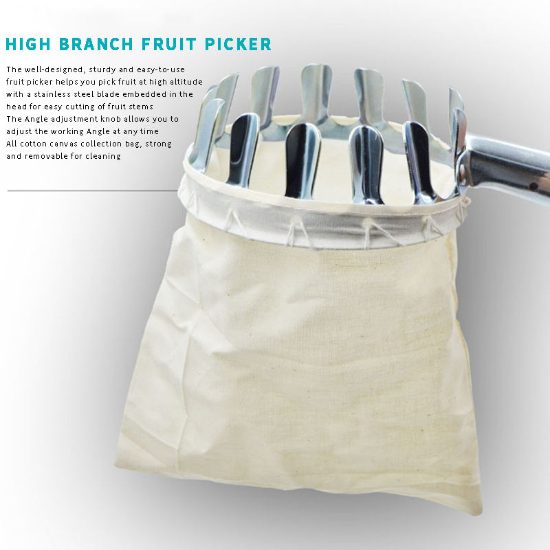 Herramienta de recolección de frutas con cuchilla de acero inoxidable resistente y bolsa de recolección, recolector manual de frutas para alturas, recolector de frutas que ahorra fruta