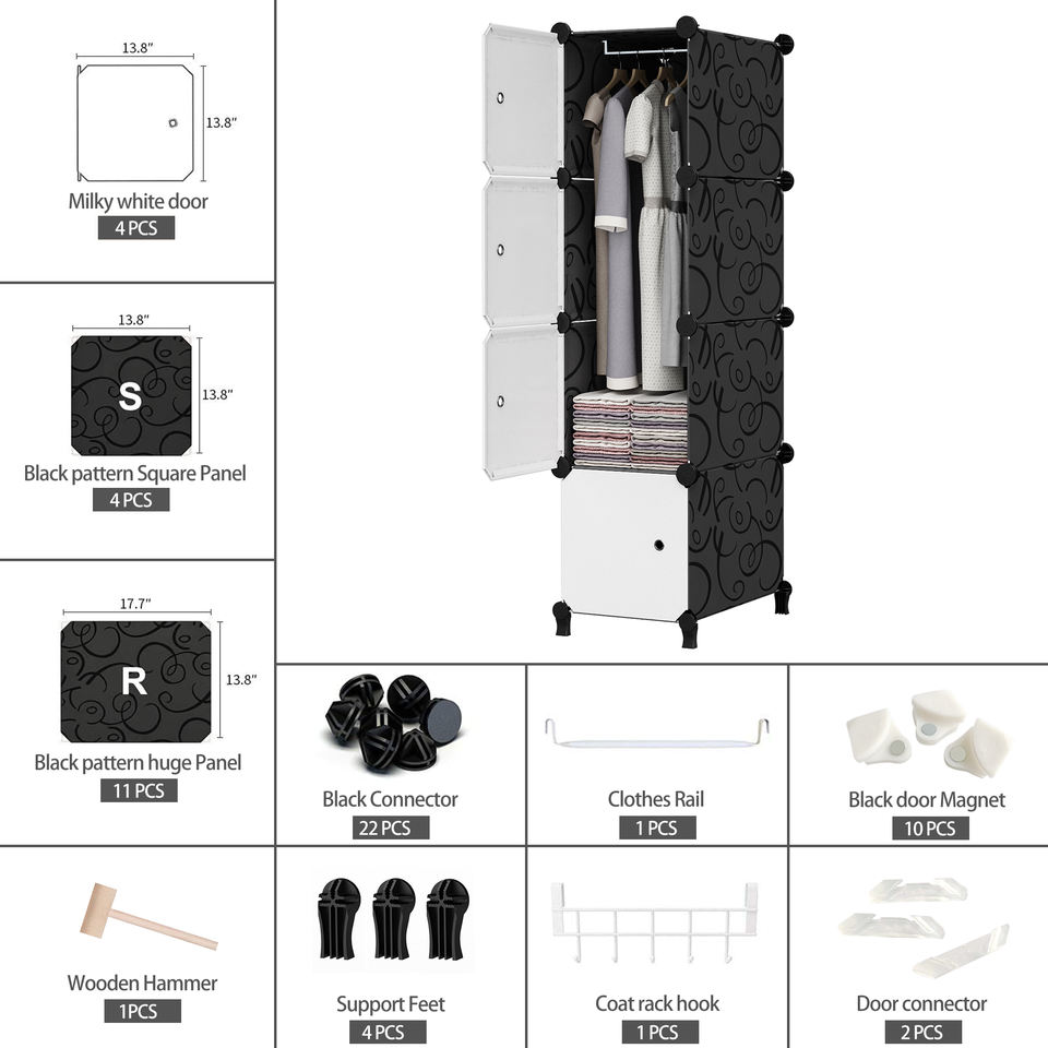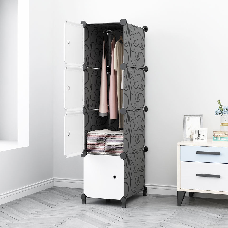Armario de plástico con 4 rejillas de espacio ultradelgado, color blanco y negro, barato