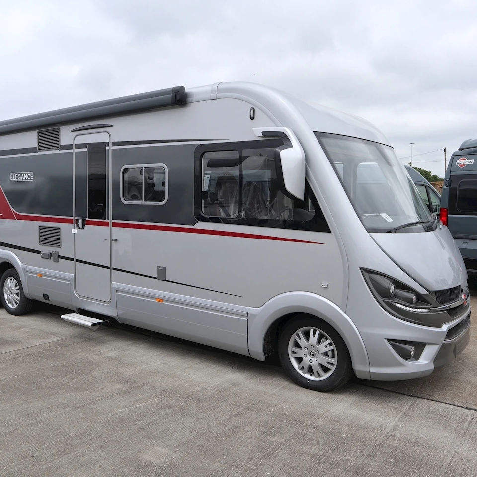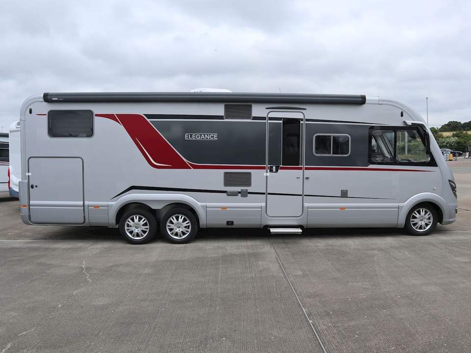 Autocaravana de Lujo ELEGANCE 910 G RHD Usada a Bajo Precio, Azul Oscuro/Gris/Negro, Emisión Euro 5, 4-6 Pasajeros, Equipaje de Aerolínea Ajustable