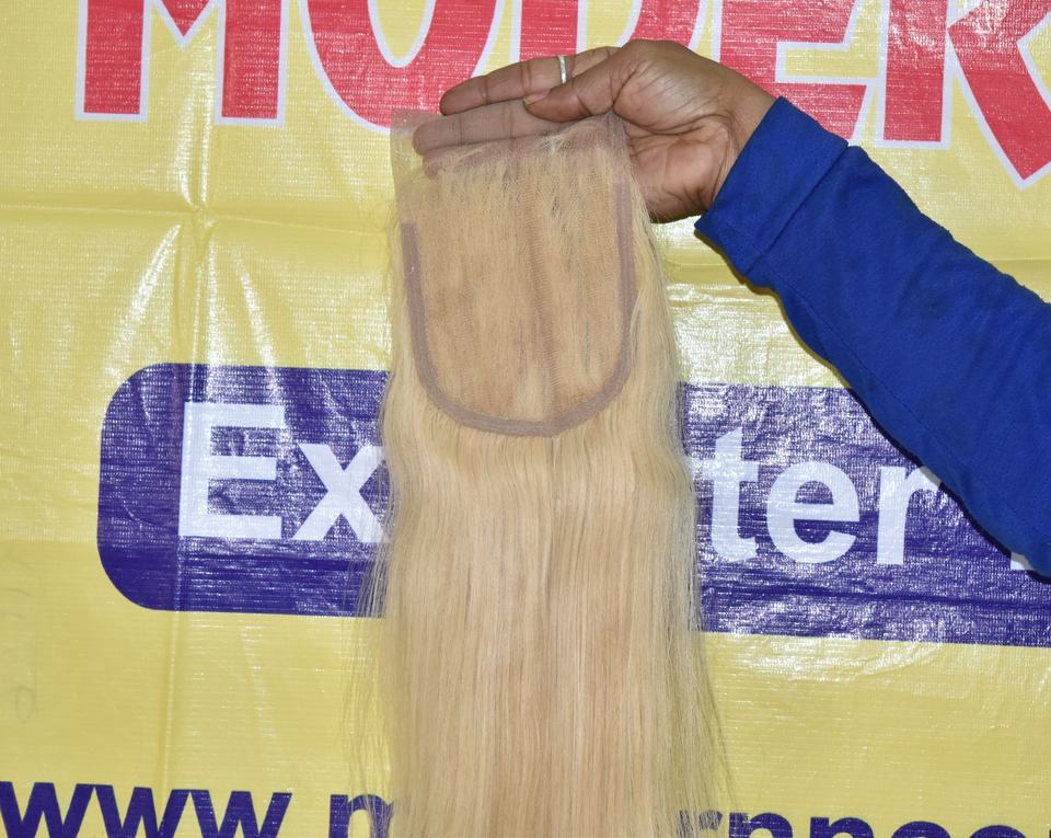Paquetes de cabello rubio crudo sin procesar de cabello indio virgen barato Cierre profundo de 5*5 Máquina de ondas naturales rectas-Proveedor de cabello humano