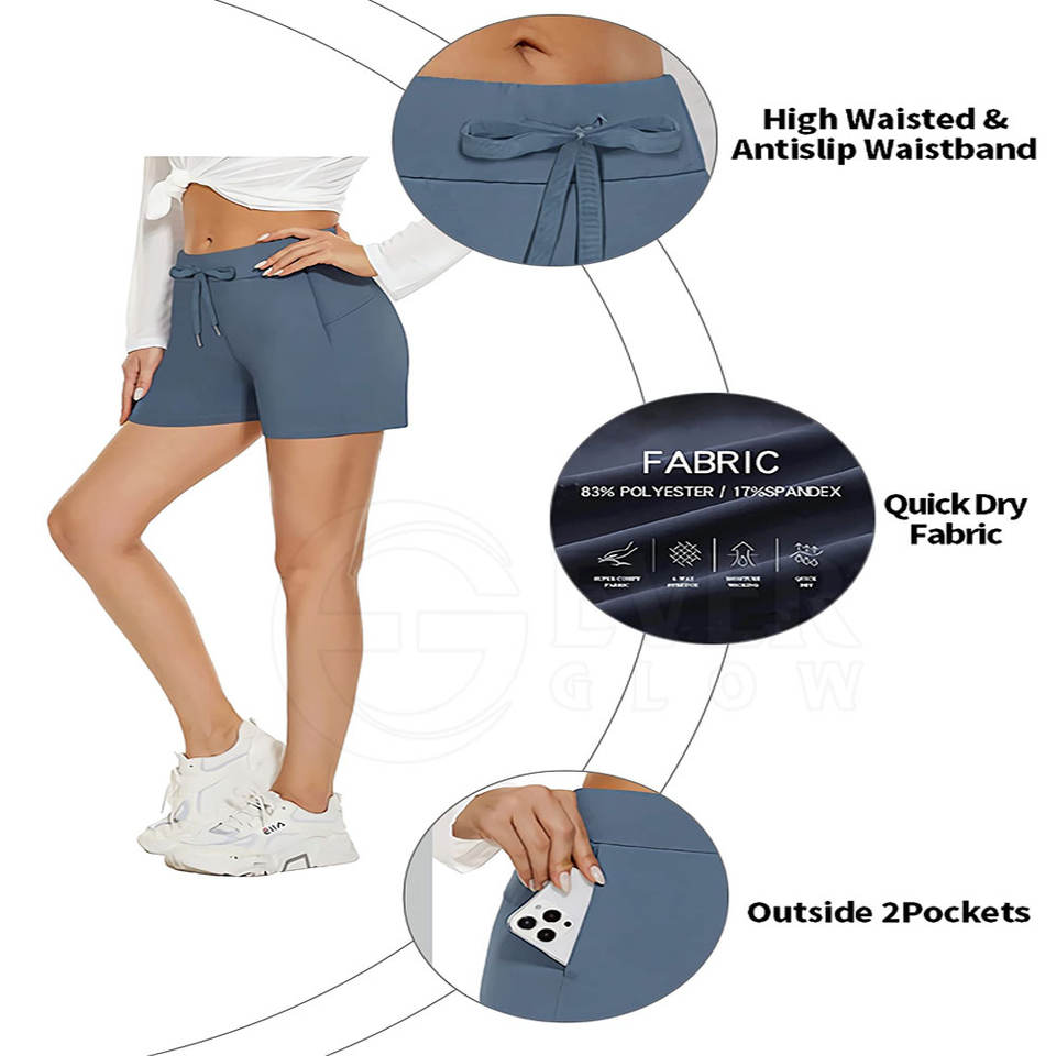 Venta al por mayor baratos cordón elástico suelto niñas pantalones cortos calientes pantalones casuales deporte Yoga correr pantalones cortos de las mujeres