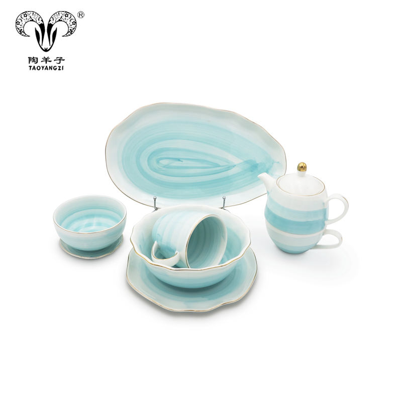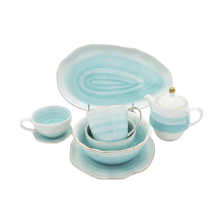 Barato al por mayor de oro de la boda vajilla platos sets/16pcs 32pcs gres vajilla con color rosa y azul de vajilla