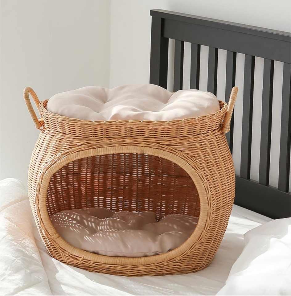 Cama para Perro Económica, Divertida y Portátil, Cesta de Mimbre para Dormir