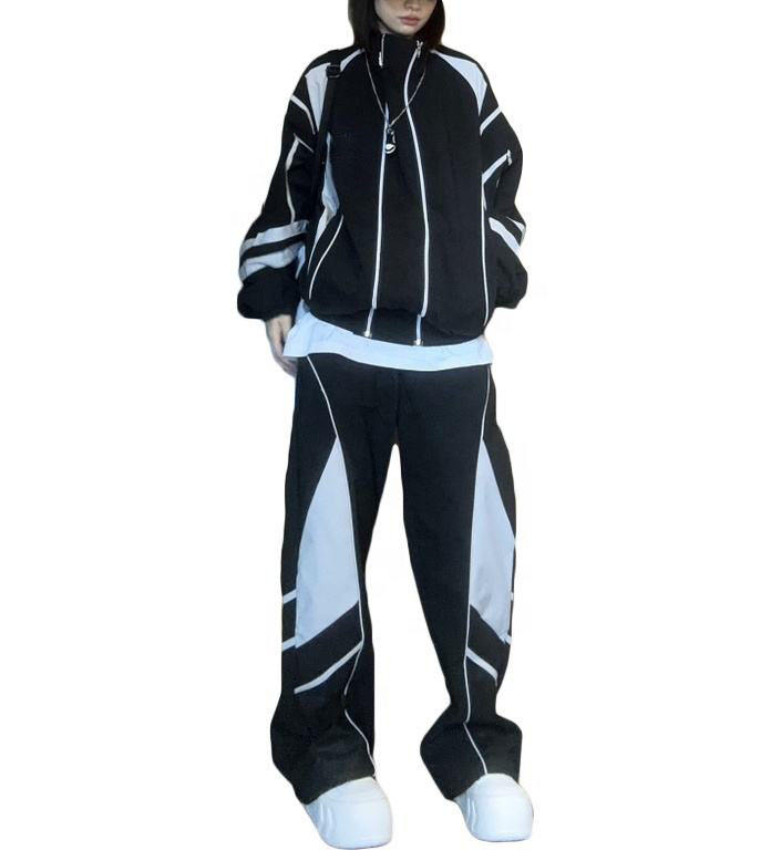 Precio barato Chándal de tela personalizado de lujo Unisex Verano 2 piezas Vintage rompevientos conjunto de chándal