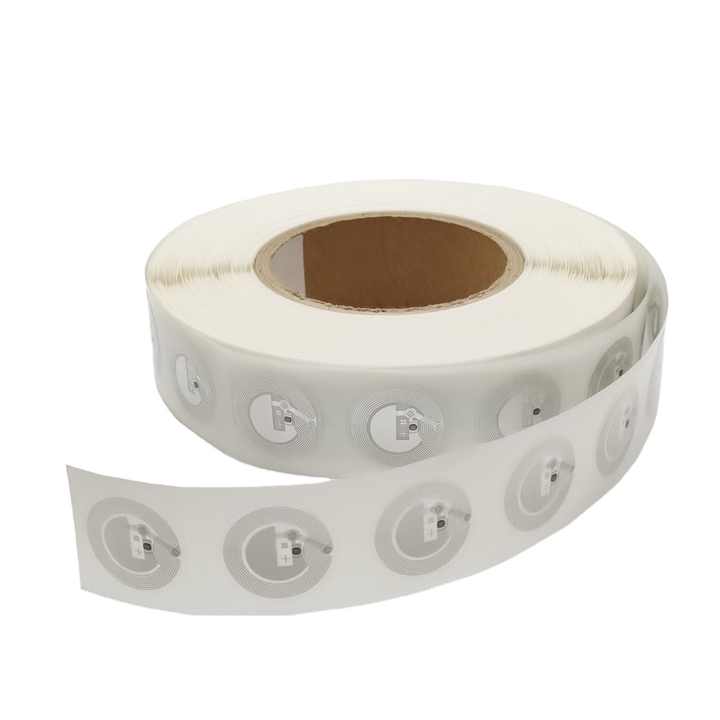 Más barato 13,56 MHz redondo programable NFC Dia 25mm rollo húmedo incrustación NFC etiqueta adhesiva inteligente
