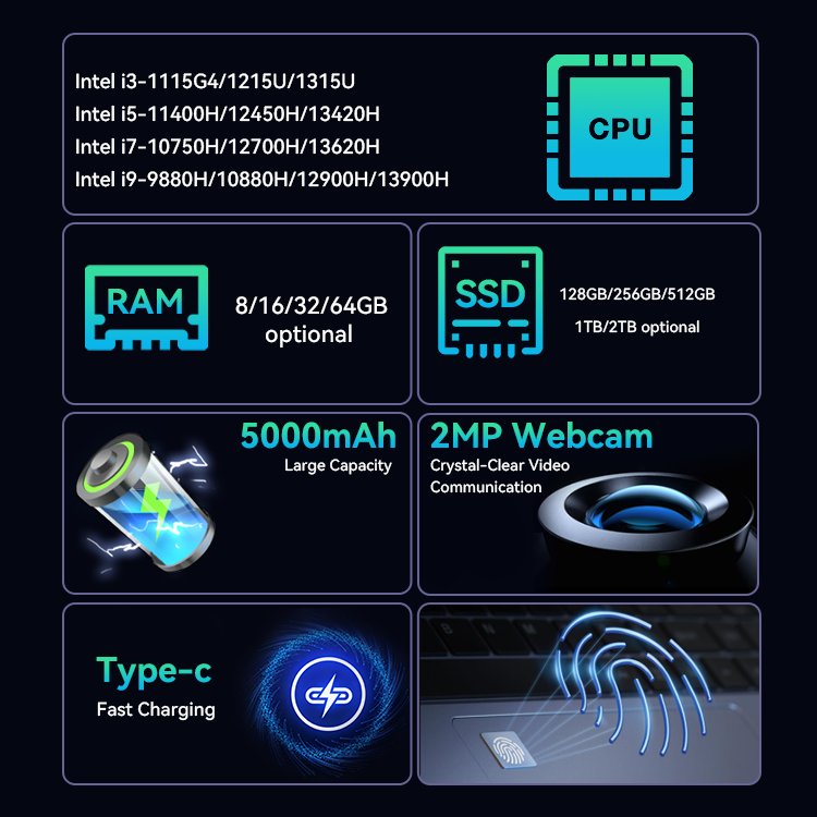 Más barato OEM Core i7 portátiles RAM 16GB ROM 512GB SSD 15,6 pulgadas portátil Notebook Computadoras Laptop