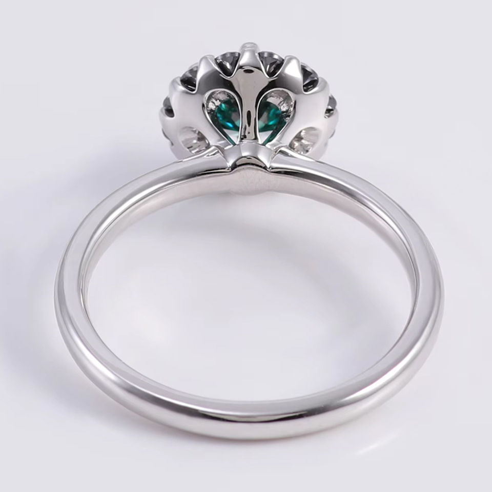 Anillo de Diamante Moissanita Verde VVS con Corte Brillante Redondo en Forma de Flor, Oro Blanco de 10k, Joyería de Compromiso para Mujer, al Precio Más Bajo